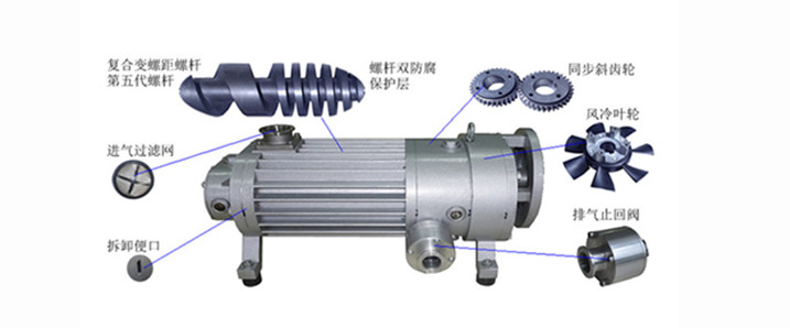 6、 防腐蝕性能。干式螺桿真空泵過流部件可采用鍍鎳處理,能耐受大部分有機(jī)酸氣和無機(jī)酸氣的腐蝕,在抽取甲苯含鹽酸氣的蒸餾體系中已成功運用。
