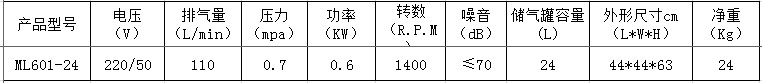 8.本產品為臺冠ML601-24無油空氣壓縮機,嚴禁加油潤滑。