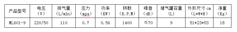 8.本產(chǎn)品為臺冠ML601-9無油空氣壓縮機(jī),嚴(yán)禁加油潤滑。