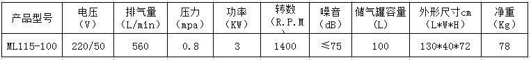 8.本產品為臺冠ML115-100無油空氣壓縮機,嚴禁加油潤滑。