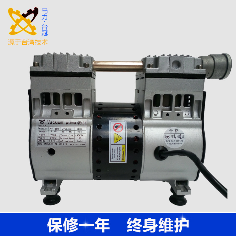 • 產品特性:1.真空度高達-95kap行業領先。 2.配有橡膠減震腳墊,運行更平穩。 3.100%無油、免維護。 4.靜音、噪音控制在56分貝左右。 5.體積小外形美觀。 6.都裝有過載保護器,不會因超負荷燒壞。 7.免費配送小配件:消音器、過濾器、減震墊、氣管接頭